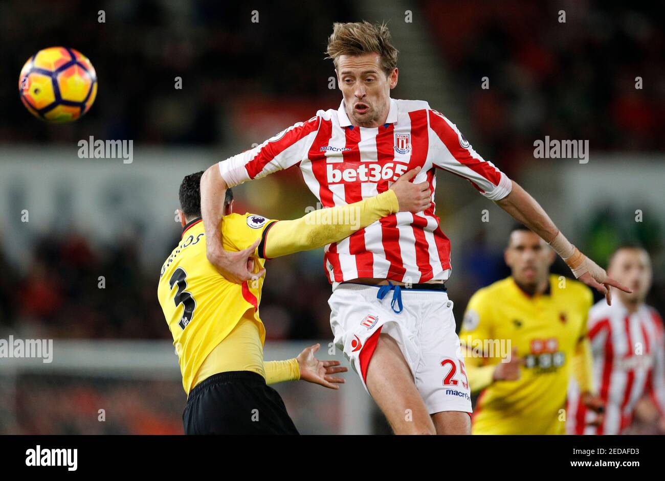 Britain Football Soccer Stoke City V Watford Premier League Bet365 Stadium 3 1 17 Stoke City S Peter Crouch In Action With Watford S Miguel Britos Reuters Darren Staples Livepic Editorial