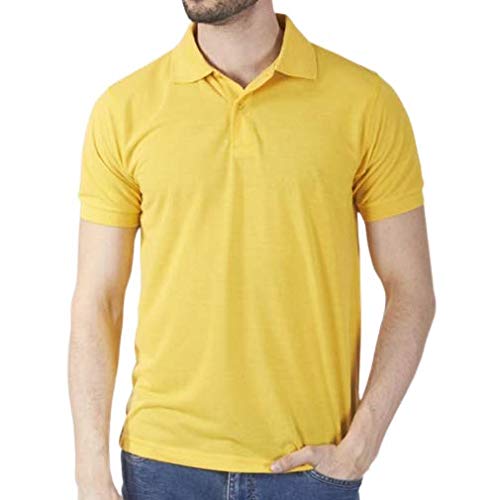 Buy Men S Plain Collar Neck Tshirts Colour Yellow Large At Amazon In